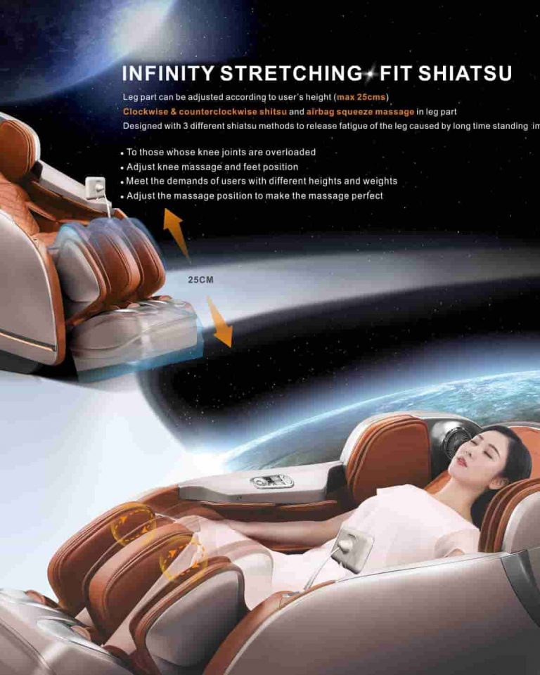 Dreamwave 3D Full Body Massage Chair is designed with a set of intelligent 3D massage hands that can walk up and down, front and rear telescopic, and silent design. It can automatically detect the position of the shoulder and can be fine-tuned; detect the human body curve and the front and rear telescopic length of the massage head according to the detected human body curve and the massage finger pressure point.