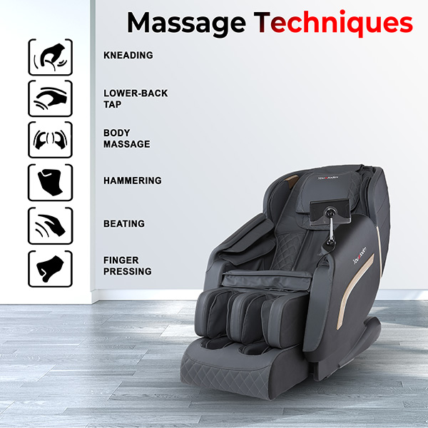 The Ecolax Massage Chair facilitates Neck through Buttocks 2D Manipulator Massage, Shoulder & Arm Airbag Massage, Leg Airbag Massage, Roller Massage at the Sole, and Waist Heat Therapy.