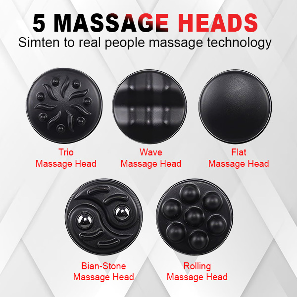 5 Ergonomic Massage Heads: Multiple techniques to target every muscle group for an effective and soothing massage.
