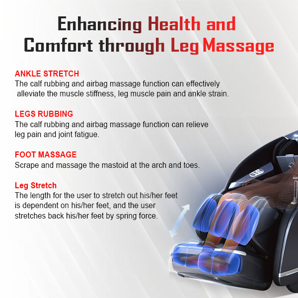 Adjustable foot and leg length to have the leg massage without discomfort. Whatever the leg dimensions, massage with Dreamwave Pro Massage Chair is a complete massage experience