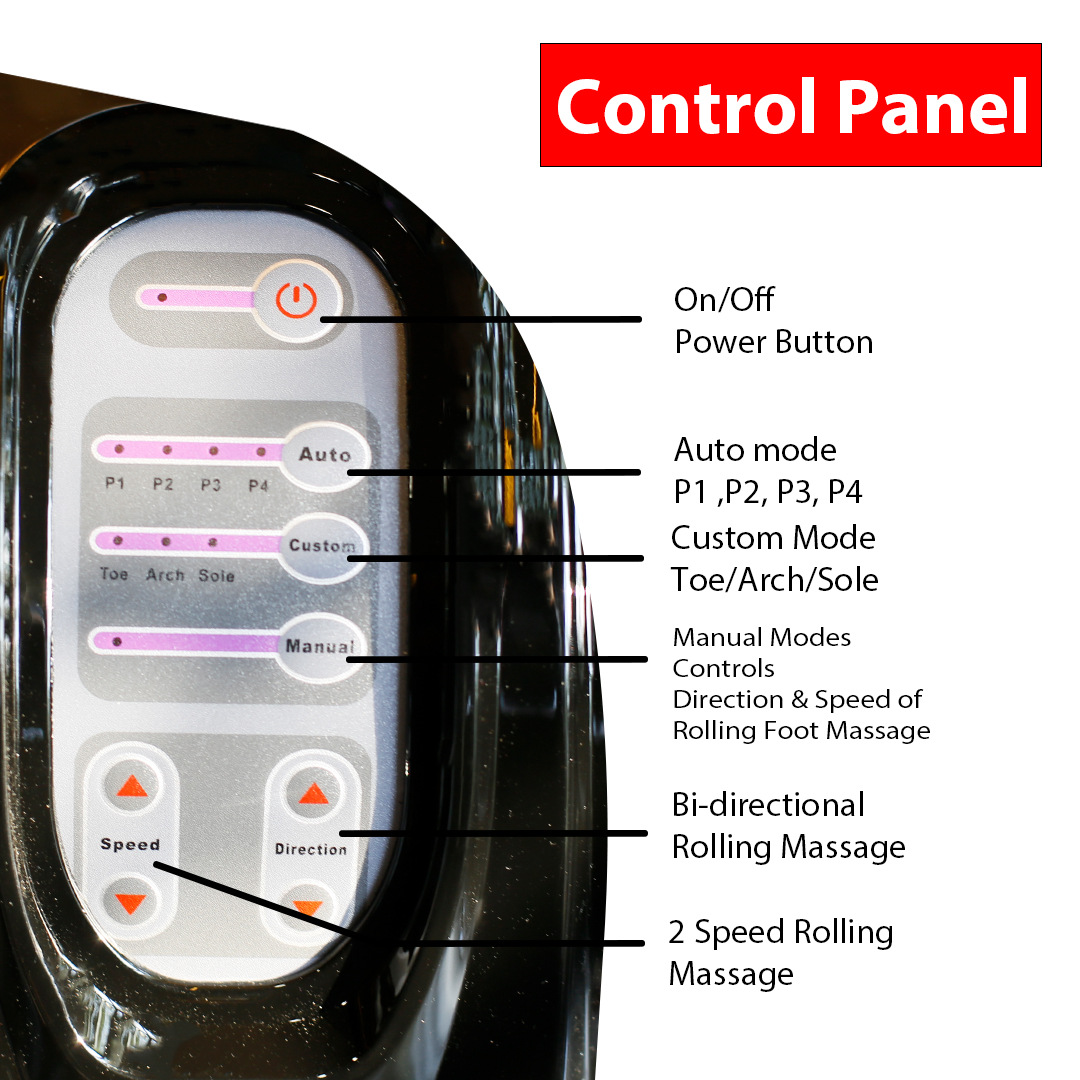 - Strategically located switch panel buttons facilitate full control of the massage function