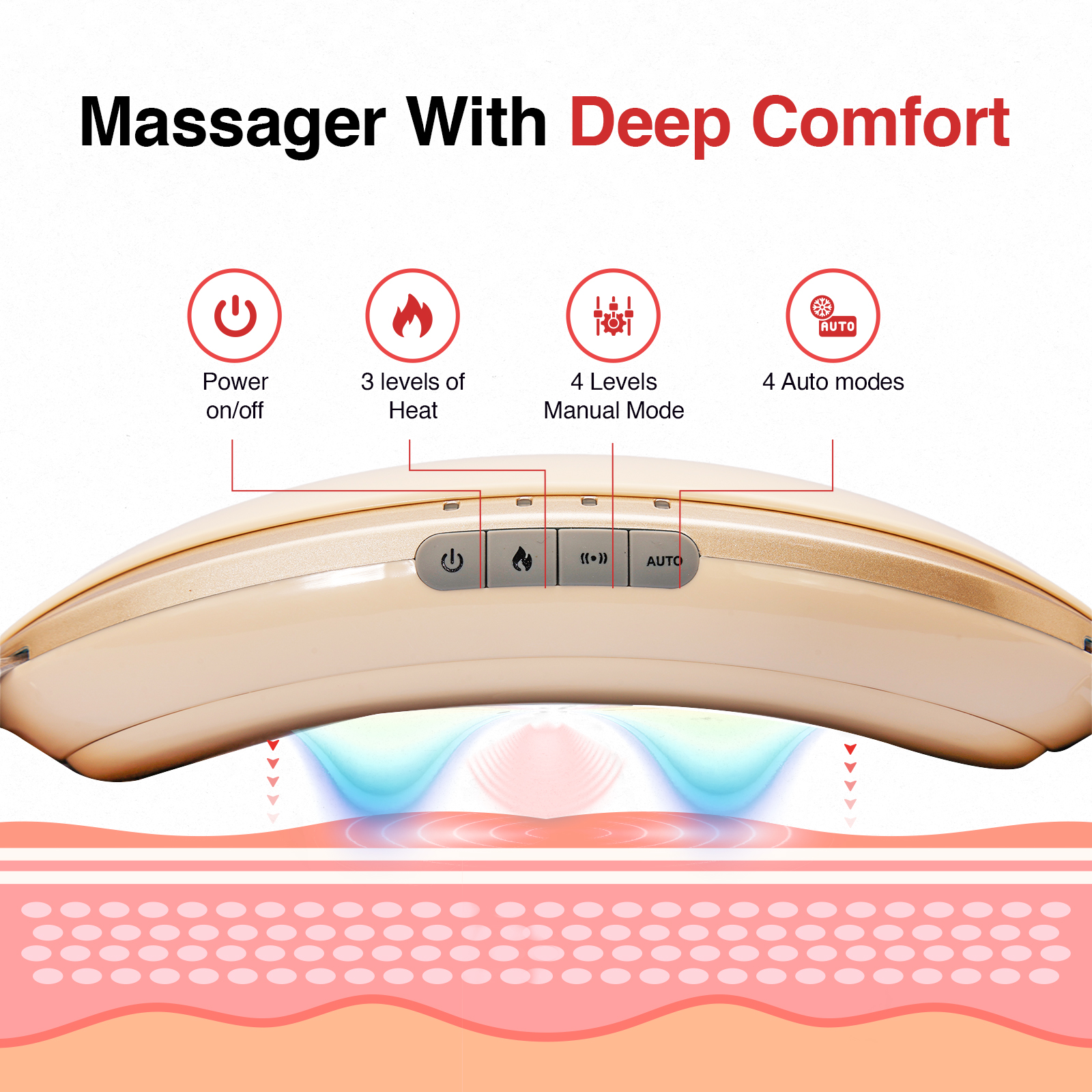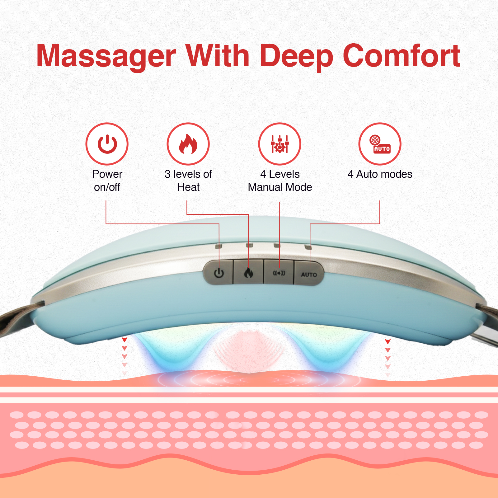 3 levels of gentle warmth help relax the core and improve overall comfort during use.