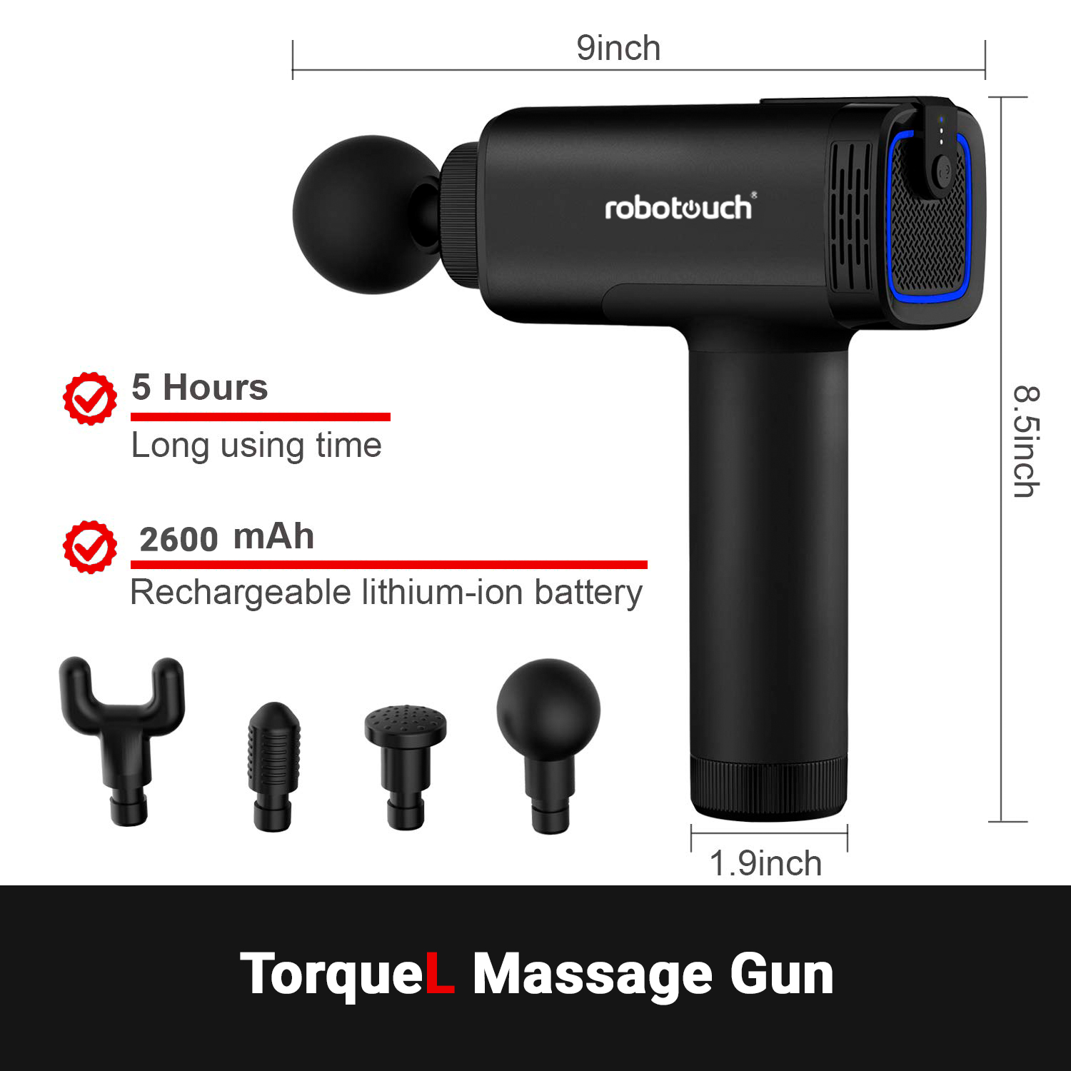 TorqueL Pro Massage Gun by RoboTouch is a wireless, state-of-the-art massage device that helps to reduce muscle soreness and tension, promote blood circulation, optimize mobility and improve the general condition of the body ‘s musculoskeletal system.